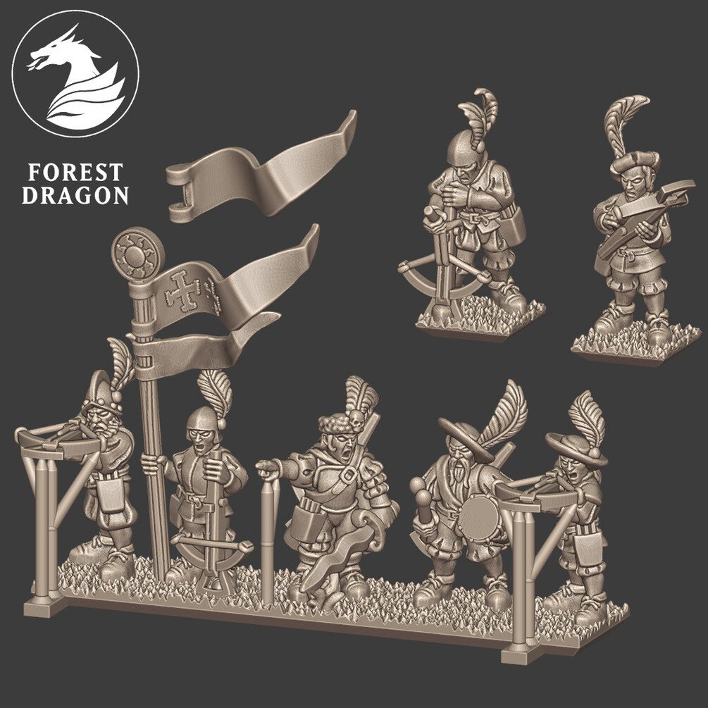 Crossbow regiment in 10 mm scale. Files are provided fully supported and are intended to be printed with the bases flat to the build plate of your resin 3D printer. Just slice and hit print!