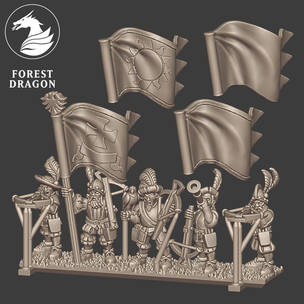 There is a choice of command stands and these can be printed with either a blank standard or with sculpted detail.