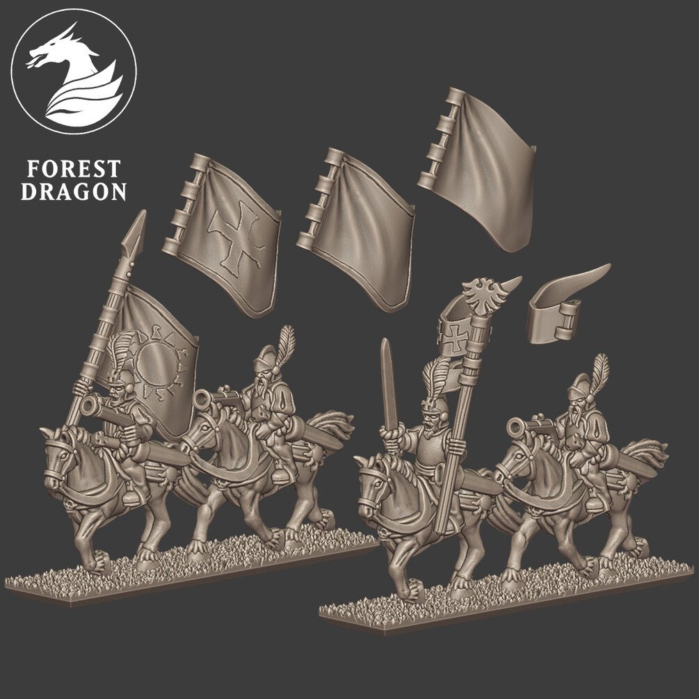 There is a choice of command stands and these can be printed with either a blank standard or with sculpted detail. In addition to the strips, the cavalry are provided individually based and supported.