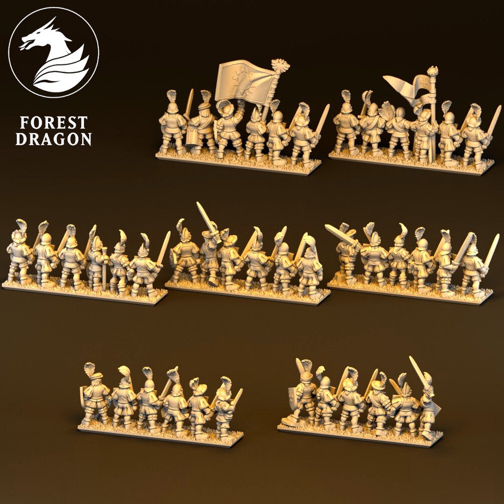 Imperial swordsmen regiment in 10 mm scale. Files are provided fully supported and are intended to be printed with the bases flat to the build plate of your resin 3D printer. Just slice and hit print!