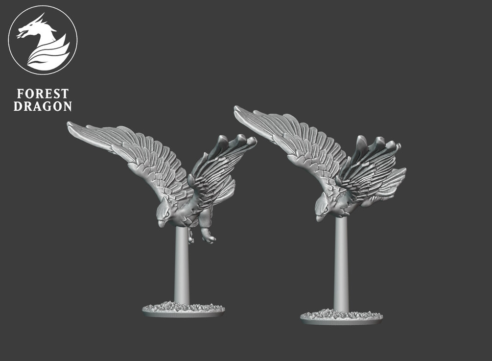Great eagles in 10 mm scale. Files are provided fully supported and are intended to be printed with the bases flat to the build plate of your resin 3D printer. Just slice and hit print!