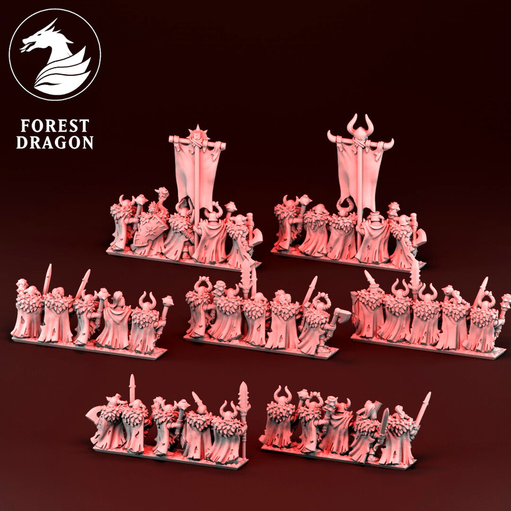 Despoilers heavy infantry regiment in 10 mm scale. Files are provided fully supported and are intended to be printed with the bases flat to the build plate of your resin 3D printer. Just slice and hit print!