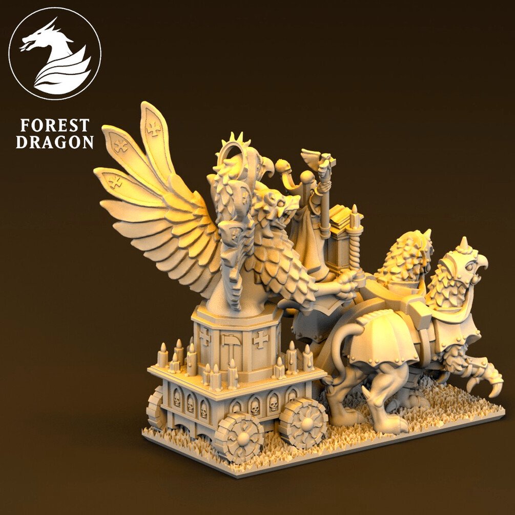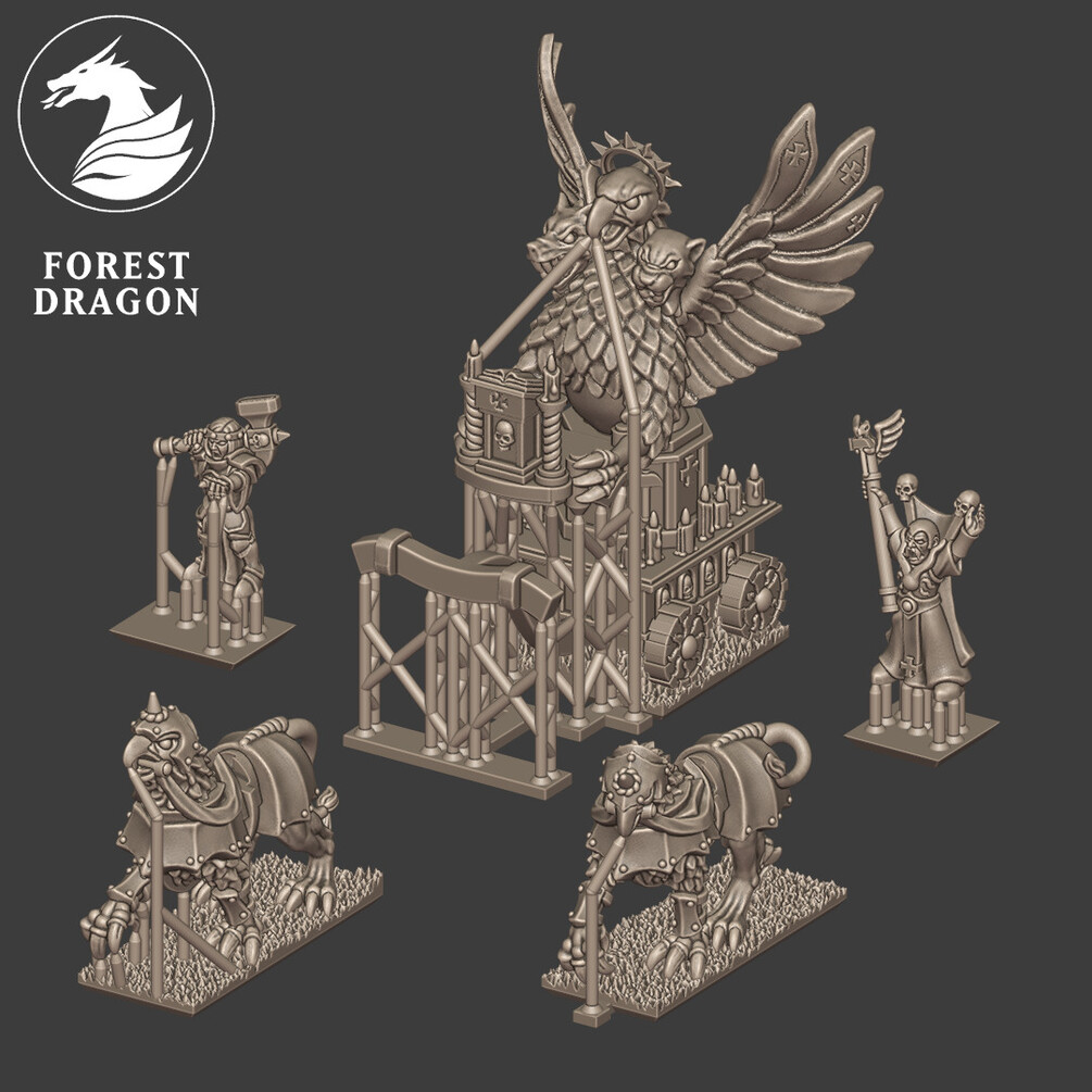 The shrine is provided with the beasts and riders separated to enable easier painting. There is the option of a wizard or warrior priest rider. The shrine is also provided as a single piece with the wizard option only.