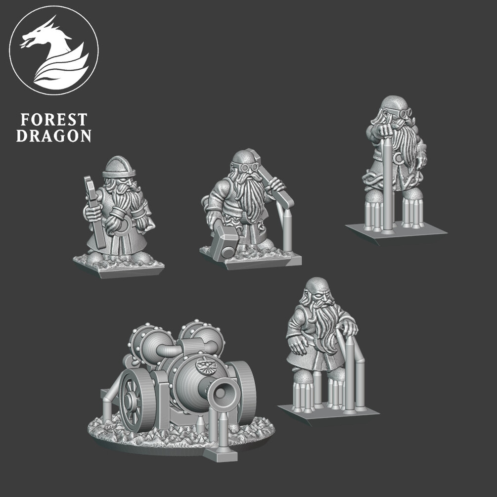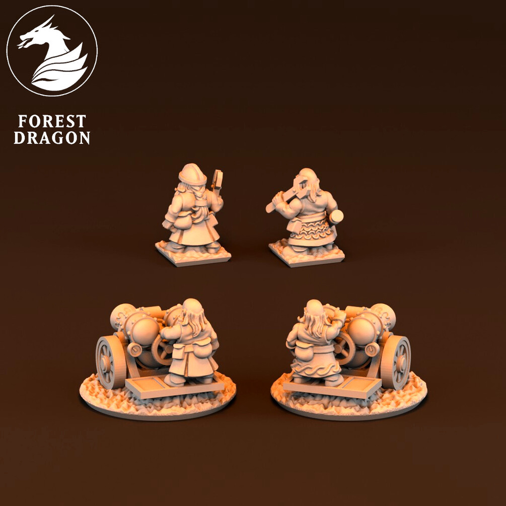 Dwarf fire thrower and crew in 10 mm scale. Files are provided fully supported and are intended to be printed with the bases flat to the build plate of your resin 3D printer. Just slice and hit print!