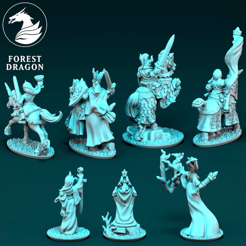 A variety of chivalric characters in 10 mm scale. Files are provided fully supported and are intended to be printed with the bases flat to the build plate of your resin 3D printer. Just slice and hit print!