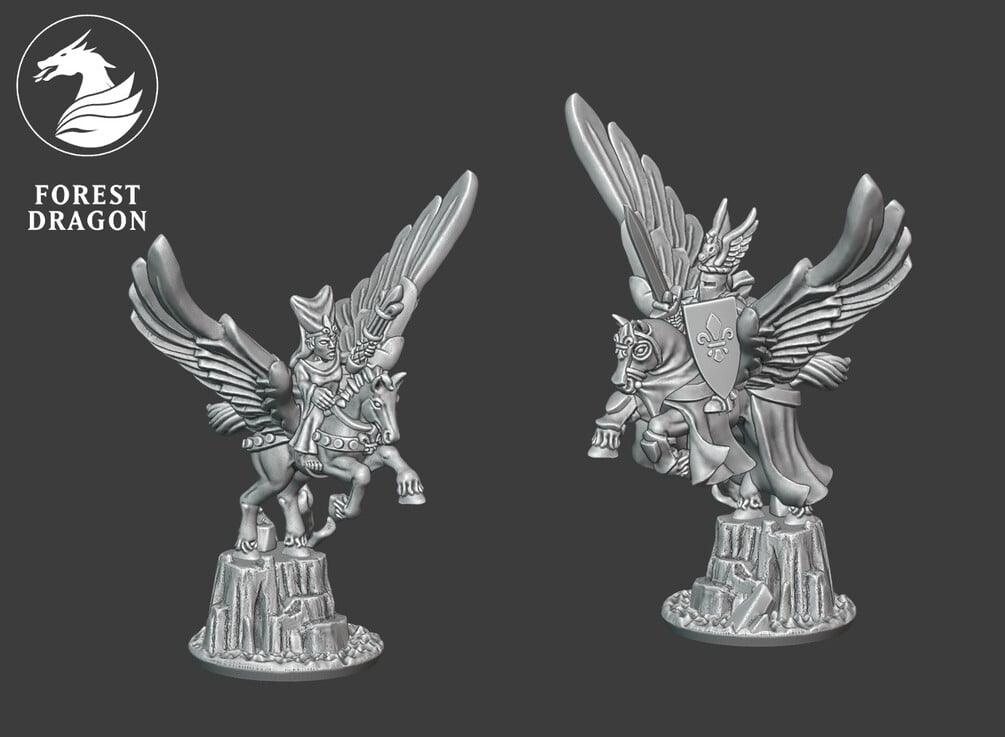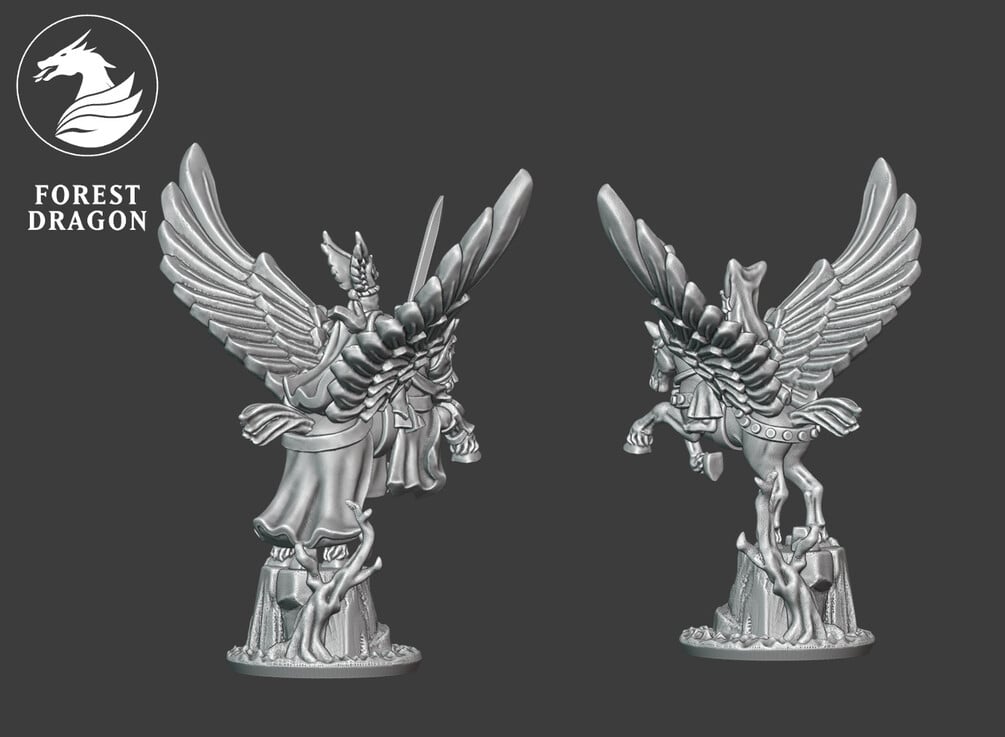 Pegasus knights in 10 mm scale. Files are provided fully supported and are intended to be printed with the bases flat to the build plate of your resin 3D printer. Just slice and hit print!