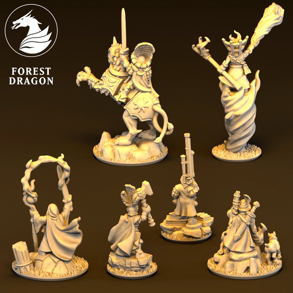 Several of the characters have options that remove magical effects or sculpted detail on armor, or allow them to be printed on smaller bases.